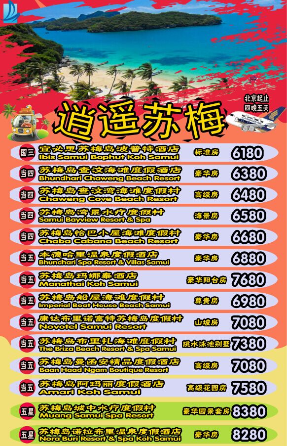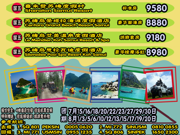 蘇梅島自由行4晚5天**機票の酒店**7-8月發(fā)團計劃