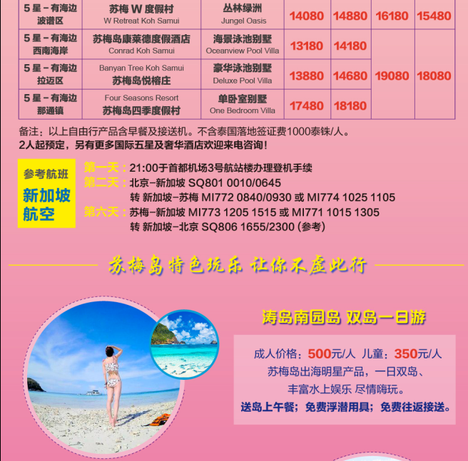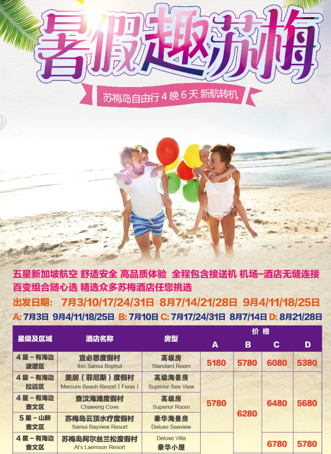 蘇梅島自由行4晚5天**機票の酒店**7-8月發(fā)團計劃