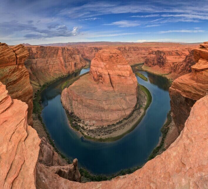 清晨驅(qū)車前往【馬蹄灣】1小時(shí)),馬蹄灣是科羅拉多河在此地270 度大回轉(zhuǎn)切割而成。這里讓人驚魂奪魄的,卻又屏息靜氣的。1000 英尺直下的懸崖下,綠色的科羅拉多河圍繞著紅色的馬蹄狀巖石,蜿蜒流淌出270 度的轉(zhuǎn)角,平靜而威嚴(yán)。站在懸崖邊俯瞰300 米下的科羅拉多河,不禁感嘆造物主神奇的魅力!隨后驅(qū)車前往【羚羊峽谷】1小時(shí))。羚羊峽谷是地球上**著名的狹縫峽谷。由于沒有任何人造燈光裝置,游客的想象力沒有約束,而且在不同季節(jié)、不同時(shí)間可以看到不同的影像。造物主賦予羚羊峽谷不可思議的魅力,羚羊峽谷給了來此的游人以出乎意料的震撼、驚喜和想象力。之后抵達(dá)拉斯維加斯,入住酒店休息。