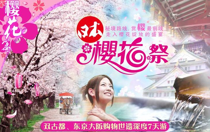 *特別報告:櫻花祭期間,如行程內(nèi)所安排之賞櫻景點因下雨、強風或氣溫等天候因素影響未綻開或凋謝,并非人為可以控制,但仍會依照原定行程前往參觀,不便之處敬請理解!