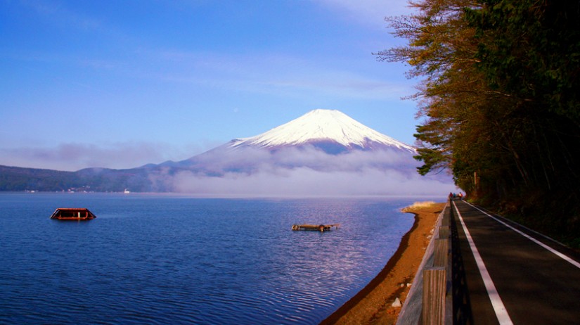 【富士山】被日本人民譽(yù)為“圣岳”,是日本民族的象征。整個(gè)山體呈圓錐狀,一眼望去,恰似一把懸空倒掛的扇子,日本詩(shī)人曾用“玉扇倒懸東海天”、“富士白雪映朝陽(yáng)”等詩(shī)句贊美它。
