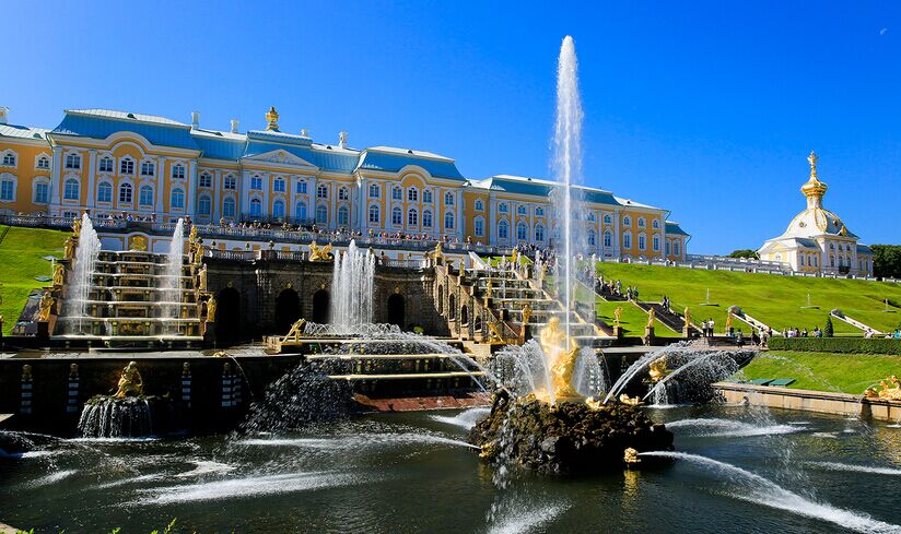 十二月黨人廣場(游覽時間約15分鐘)乃坐落在聶瓦河岸,海軍司令部大樓旁(外觀)。西元1925年前,十二月黨人廣場,原名為元老院廣場之所以后來改名是為了要紀(jì)念發(fā)生在西元1825年的流血政變-十二月革命。由普希金的抒情詩而得名的青銅騎士像,尼古拉一世沙皇兩支點青銅騎馬雕像,參觀伊薩基耶夫教堂(外觀)。后乘車前往夏宮噴泉花園(入內(nèi)參觀約1小時) “俄羅斯夏宮”、“彼德宮”。位于芬蘭灣南岸的森林中,距圣彼得堡市約30公里,占地近千公頃,由瑞士人多梅尼克·特列吉尼設(shè)計,是歷代俄國沙皇的郊外離宮,也是圣彼得堡的早期建筑。這里有37座金色雕像,29座潛浮雕,150個小雕像,64個噴泉及2座梯形瀑布。 在噴泉群一個大半圓形水池的中央,聳立著大力士參孫和獅子搏斗的雕像,這就是著名的隆姆松噴泉。塑像高3米,重5噸。