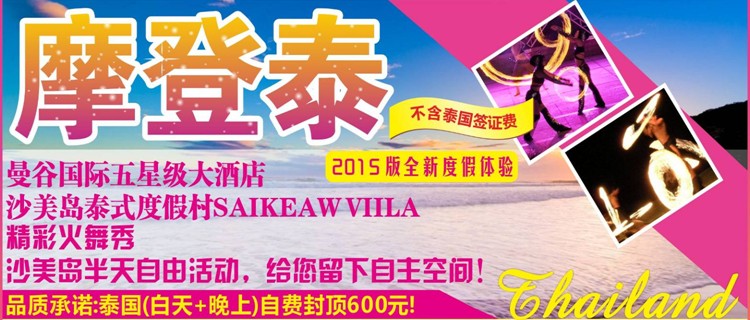 【泰國風情園】(約45分鐘)是目前**具人氣的景點,含有民族特色及南洋風情自然與人文的雙重景觀:您可以親身體會深體會古代暹羅人民的潑水節(jié)氣氛。午餐后前往國家海洋公園【沙美島】展開我們的精彩的沙美島風情游。抵達沙美島后,您可在此享受日光浴更可投身大海享受悠閑的海島風光,放松自我、盡享這世外桃源帶給您的溫馨假期。晚上在沙美島上享用海鮮餐并觀看火舞秀。