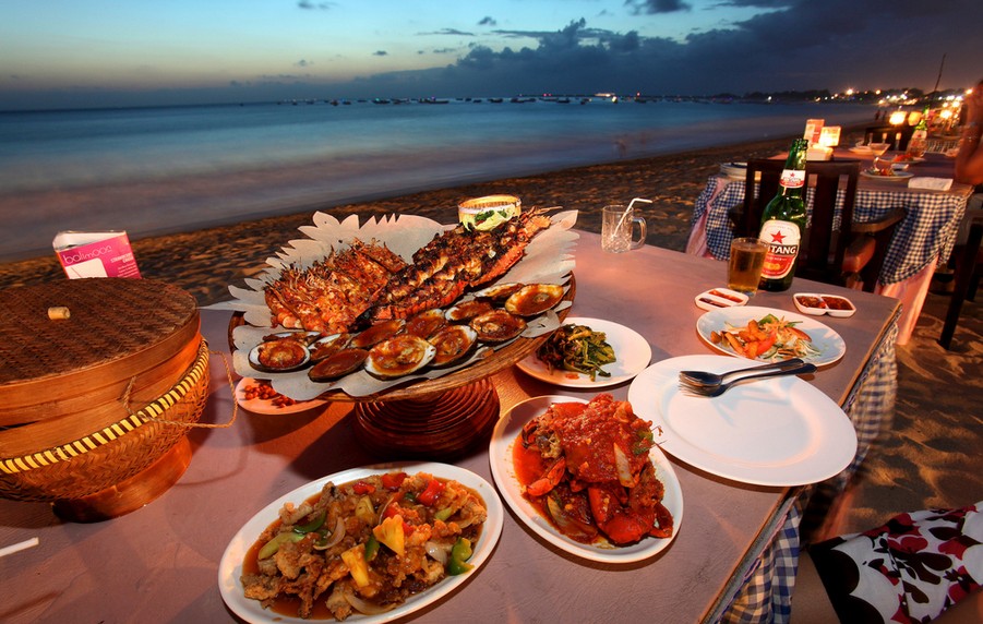 享受美食  臟鴨餐、金巴蘭燒烤BBQ、火山自助料理、印尼風(fēng)味餐、無(wú)敵海景180度印度洋情人崖下午茶
