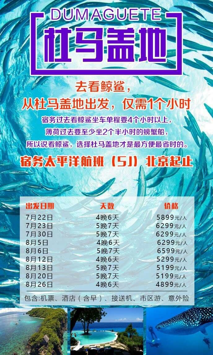 杜馬蓋地4晚6天~5晚7天<機票の酒店>7-8月計劃